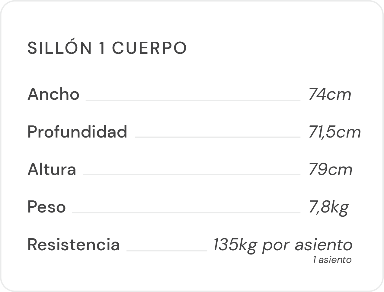 Todos los sillones con sus almohadones impermeables correspondientes.
